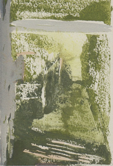 Gouache, watercolor linocut on paper. 4 in. x 6 in.